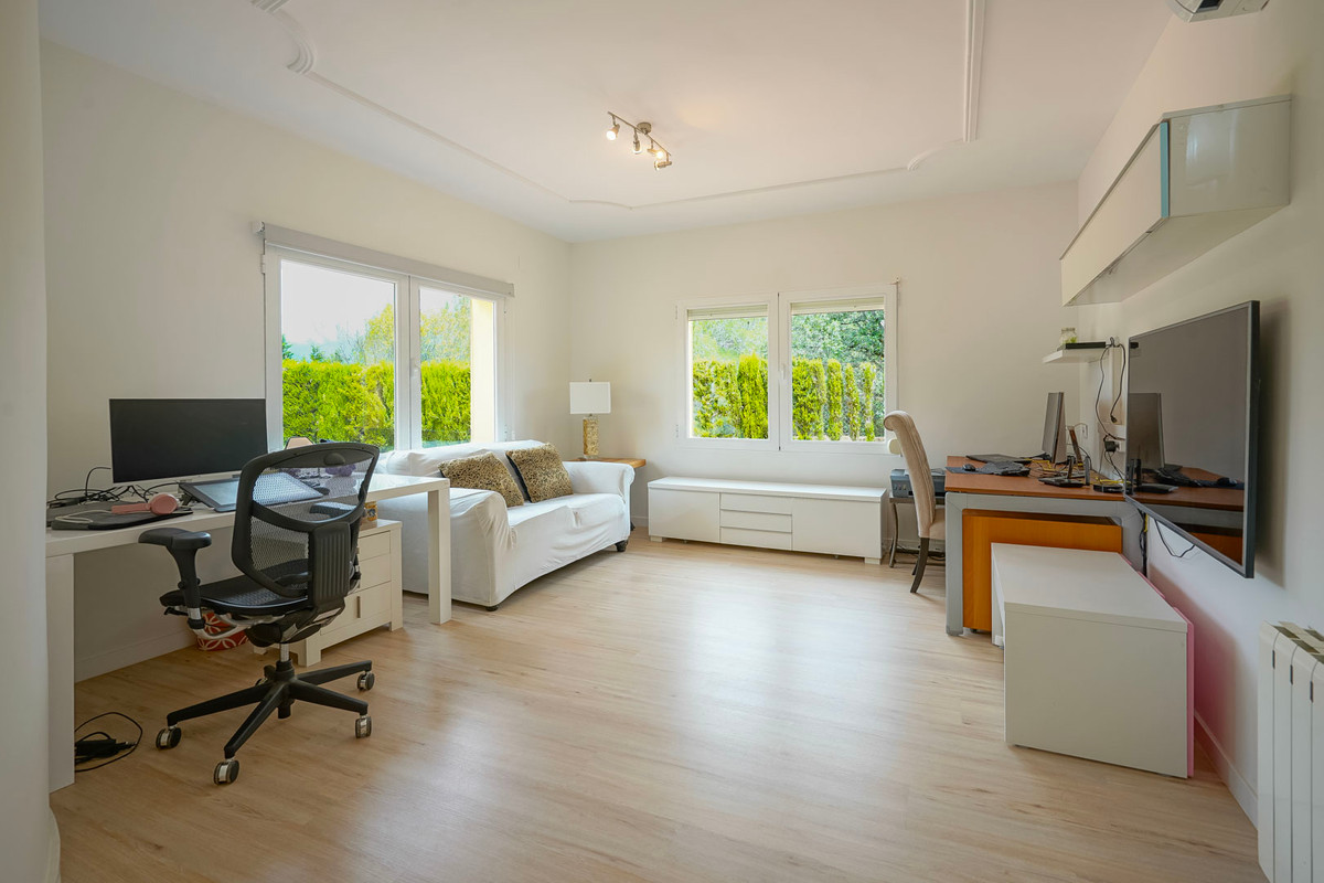 Outside, you enjoy an attractive courtyard with a sauna, an outdoor bathroom and a covered outdoor kitchen with pizza oven and a beautifully landscaped grass garden overlooking the beautiful landscape, the ideal place to relax in privacy. There is also a covered east-facing terrace to enjoy the morning sun and a spacious driveway with an automatic gate and exterior lighting.