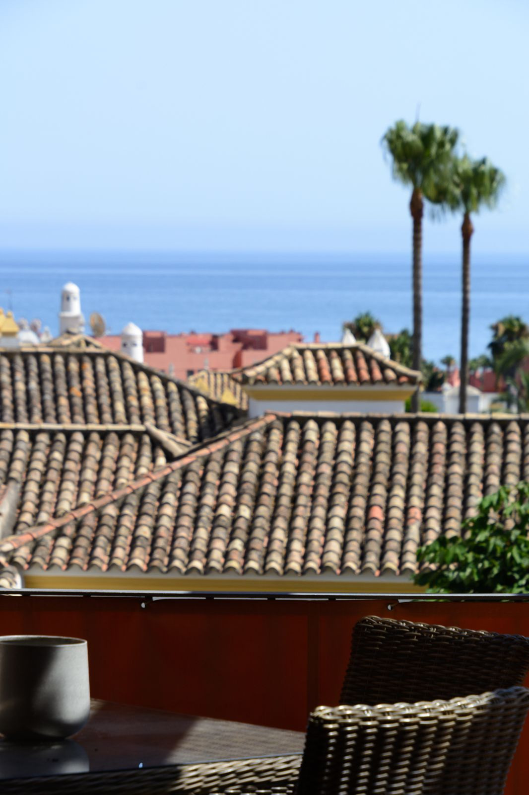 The penthouse boasts a generously sized bedroom with an en-suite bathroom, both in immaculate condition. From both the living room and the bedroom, you have direct access to a spectacular 25 m² south-facing terrace offering breathtaking open views of the Mediterranean Sea, Estepona town, and the surrounding landscape — the perfect spot to enjoy sunrises, sunsets, or alfresco dining year-round.