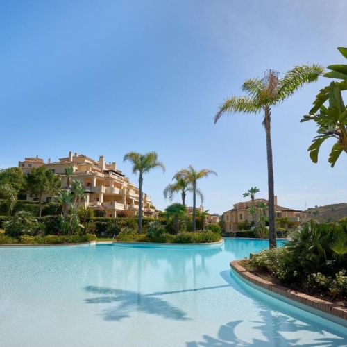 The exclusive urbanization has 24 hour security, lush tropical gardens, several swimming pools (indoor and outdoor), gym and a complete spa, all surrounded by the prestigious golf course El Higueral.