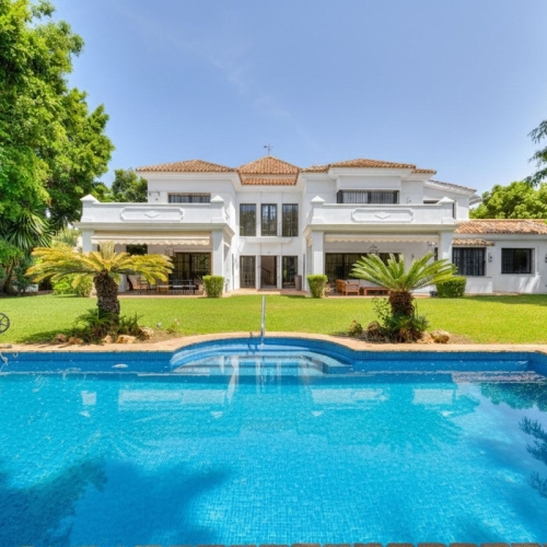 Welcome to this exceptional Mediterranean-style villa, located in the exclusive residential area of Guadalmina Baja – Casasola, Estepona. Just 300 meters from the beach, this south-facing property offers privacy, space, and elegance in one of the most sought-after enclaves on the Costa del Sol.