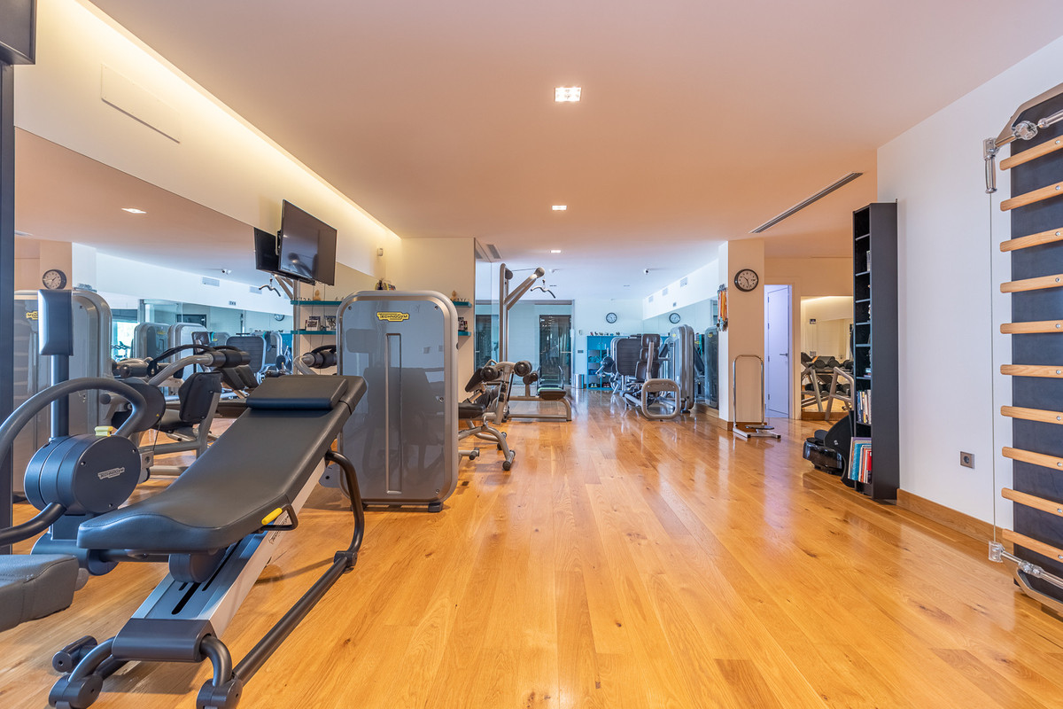 The ground level of the villa with access to the garden consists of games and barbecue area that features a dumbwaiter connecting directly to the kitchen. The upper level with access to the pool area comprises wine cellar, fully-equipped gym, jacuzzi, sauna, Turkish bath, and a dressing room. The first floor welcomes you into a spectacular living room offering breathtaking panoramic sea views, dining area and state-of-the-art kitchen with an island. Furthermore, on this level are 4 en-suite bedrooms, laundry room and service apartment with two bedrooms, lounge and a bathroom. The second floor houses an office room with access to the solarium and en-suite master bedroom that includes walk-in closet and opens onto a vast terrace.