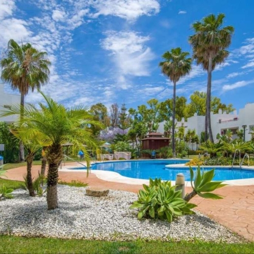 Campos de Guadalmina is a secure, well-kept residential complex with six communal swimming pools, landscaped gardens, and a relaxed atmosphere. The location is peaceful yet convenient, just 2 minutes from San Pedro de Alcántara, 10 minutes from Puerto Banús 20 minutes from Marbella town center and Estepona town center, next to Guadalmina commercial area, where you'll find supermarkets, cafes, shops, and restaurants.