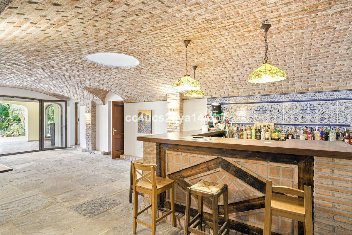 The basement level of the home is exceptionally unique for a Spanish property. It includes a fully equipped bar, pool table, utility room, gym area, and a separate room with shower and toilet, which could serve as an additional bedroom. One of the standout features is the cinema room, all finished with remarkable historical touches including 500-year-old Tudor bricks and flooring salvaged from a traditional cotton mill.