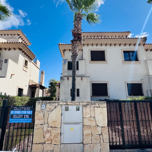 This South East Facing, Three Bedroom, Semi Detached Villa on La Finca Golf 5* Hotel Spa Resort is located just a few minutes' drive from the charming village of Algorfa. The 5* hotel, spa, and golf course are within a 7-minute walk, while an array of eating places, café bars, and shops can be reached within a 3-minute drive. Quesada and Benijofar are just 10 minutes away by car, and the beautiful beaches of the Costa Blanca South are approximately a 20-minutes. This 100m² villa offers both front and rear access and boasts a desirable outlook with views through to the golf course and over the immense citrus groves to the mountains. The spacious living area features a characterful beamed ceiling, an open fireplace, and double sliding glazed doors leading out to the garden — creating a warm and inviting atmosphere. Stairs from the lounge lead up to the first floor. The separate fitted kitchen is functional and well-equipped, with an adjoining utility area. Also on the ground floor is a double bedroom and a modern shower room. Upstairs, you'll find two further double bedrooms, both with access to terraces one benefitting from thos delightful views over the citrus groves and nearby mountains. A family bathroom serves this level, and all bedrooms benefit from built-in wardrobes, with ducted air conditioning installed throughout the property. Internal stairs provide access to the private solarium, ideal for relaxing or entertaining with panoramic views. The exterior of the villa includes both front and rear gardens, a BBQ area, off-road parking, and access to beautifully maintained communal gardens and a lovely communal pool area — all set within a well-kept and sought-after community. A fantastic opportunity for golf lovers and those seeking a peaceful yet well-connected lifestyle in one of the most popular areas of the Costa Blanca South.\n