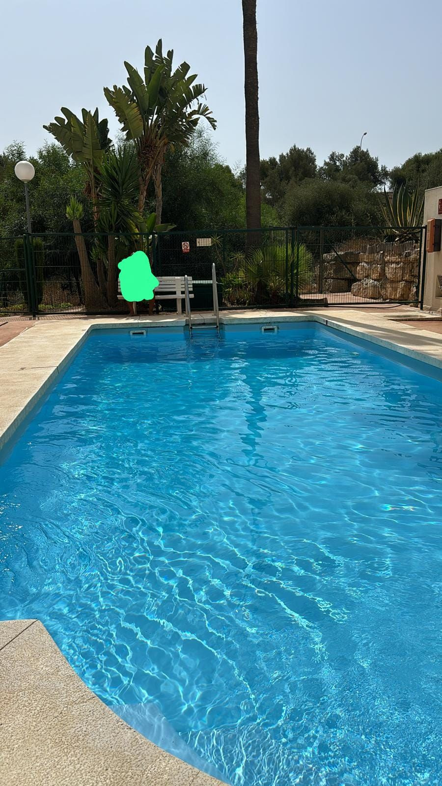 Gated community with swimming pools and gardens.