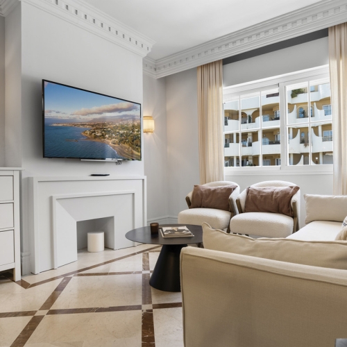 This elegant apartment in residential complex, located in Nueva Andalucía, Marbella, has been fully renovated, offering a modern and sophisticated living space. With 150 m² of built area, the property features two spacious bedrooms and two full bathrooms, designed with contemporary style and high-quality finishes.