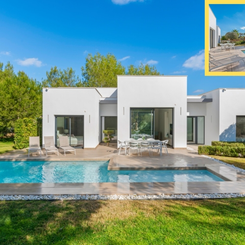Set on a private plot with breathtaking views over the golf course, this villa features 6 generously sized bedrooms, 4 full bathrooms, and an additional guest toilet — ideal for large families or entertaining guests. The sleek, modern architecture is complemented by high-quality finishes and natural materials throughout.