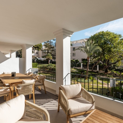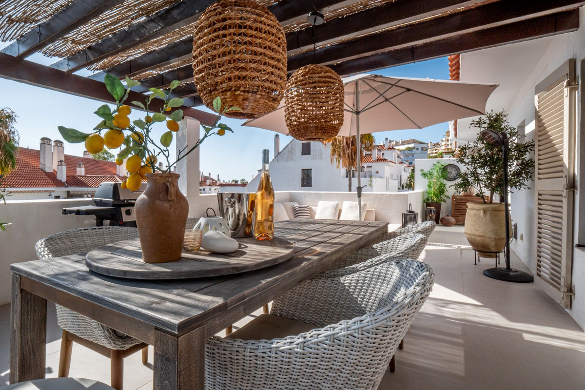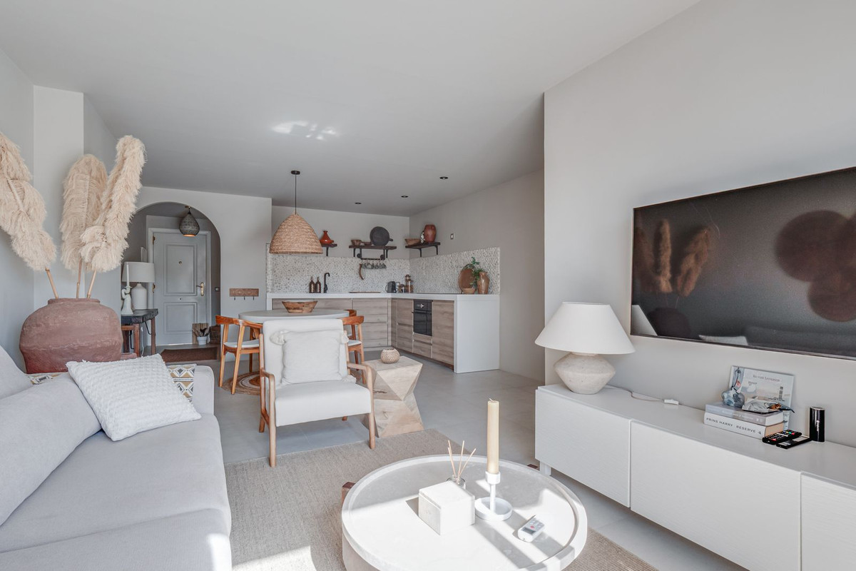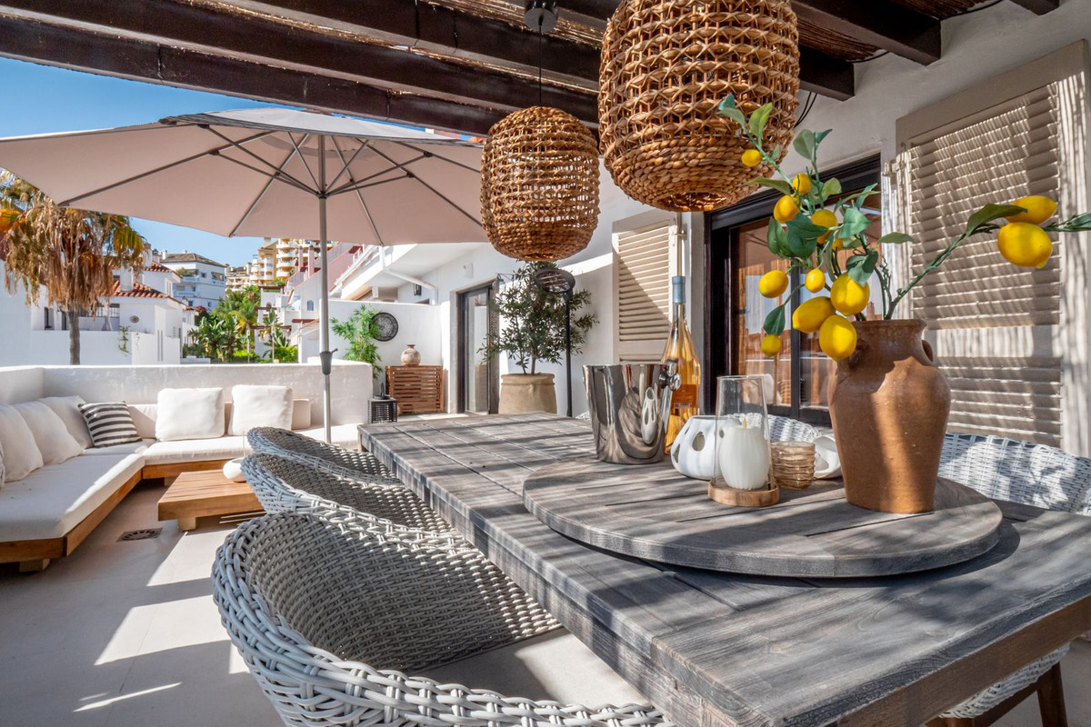 Beautiful, stylishly renovated 2-bedroom apartment in the charming, popular, typically Spanish urbanization of La Maestranza, in the heart of Nueva Andalucia.