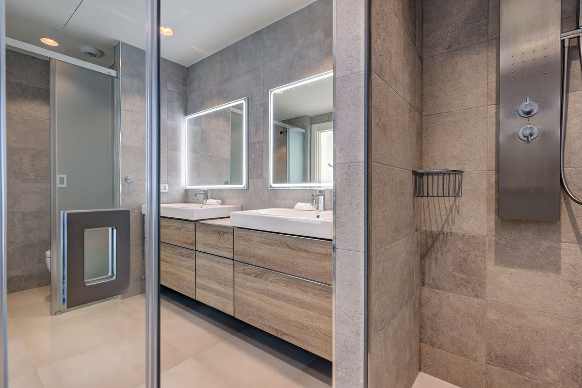 Boasting over 300m² of refined internal living space and an additional 350m² of terraces, this penthouse redefines contemporary living. Each of the five bedrooms has panoramic views and feature en-suite bathrooms with high-end hydro-massage showers and jetted baths. The property is equipped with over €250,000 in custom upgrades, including two bespoke kitchens with Miele appliances, underfloor heating, a full domotic home automation system, and an elegant Italian staircase. The duplex layout includes two private plunge pools, a spacious jacuzzi, and separate living areas on each floor with open-plan kitchens, perfect for entertaining or multi-generational living.