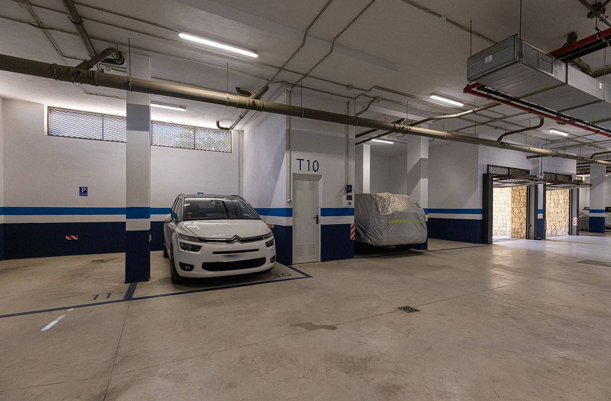 Convenience: Four parking spaces with garage potential and three storage rooms.