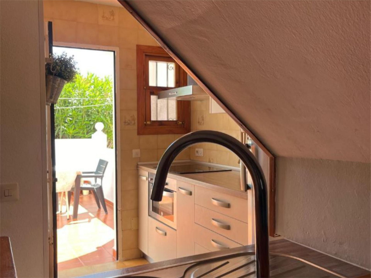 After walking through the garden and entering the property you will find a comfortable living room with a fireplace. This room is very well lit and ventilated. The kitchen, on the other hand, is in an independent space, fully furnished and gives access to the east-facing terrace.
