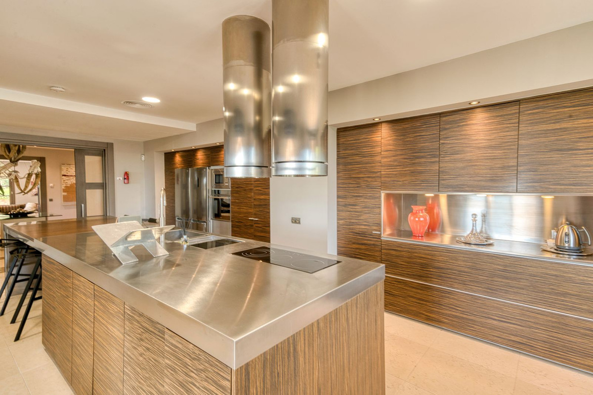 Upstairs, the luxurious master suite boasts a private terrace and dressing room, accompanied by a guest suite and two double bedrooms. A dedicated study and a separate TV lounge offer added flexibility.