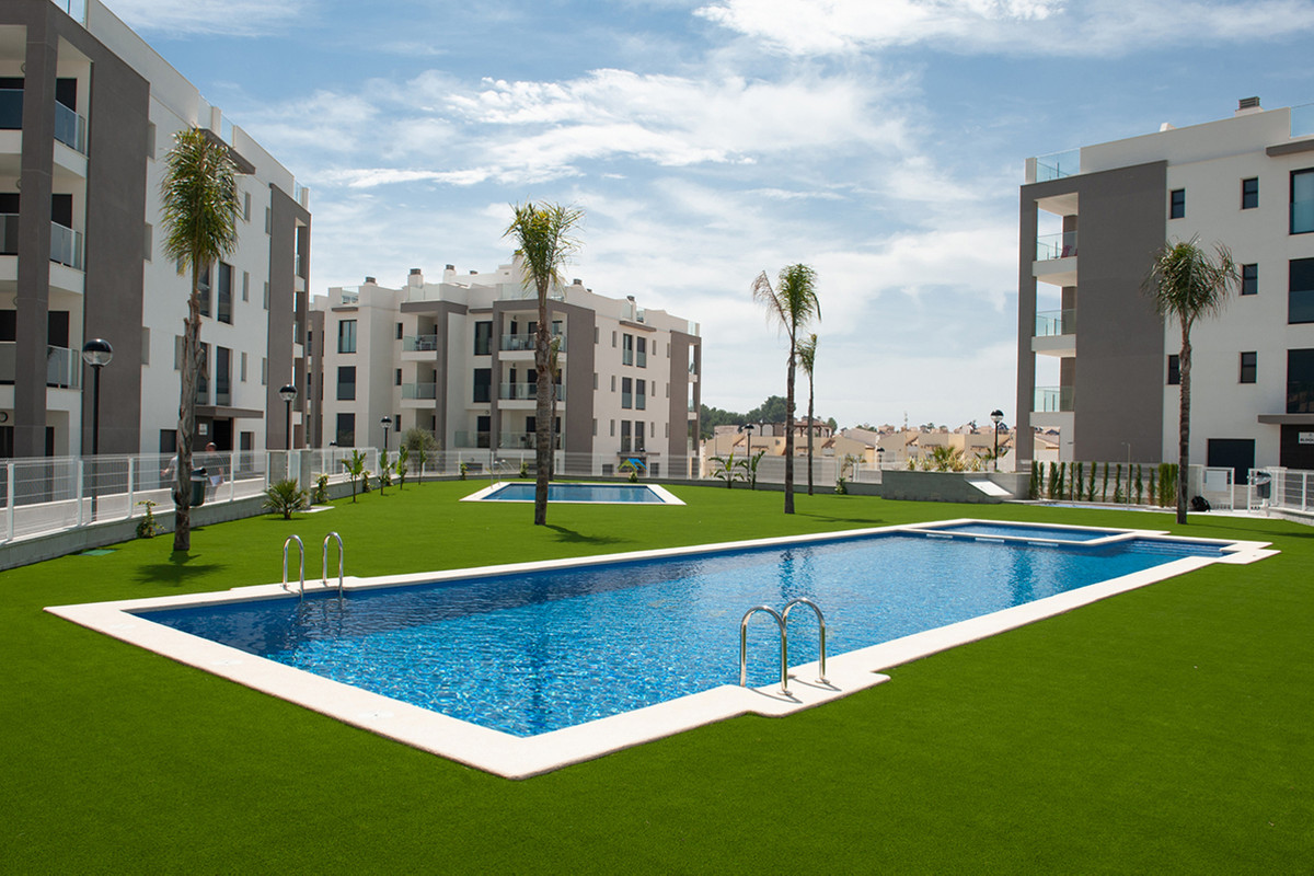 There is a lovely communal green area with three communal swimming pools, children's playground area, tennis/padel court and a beautiful communal park. These apartments are fantastic value for money and the location is great with the bars, restaurants and amenities only a short walk away.