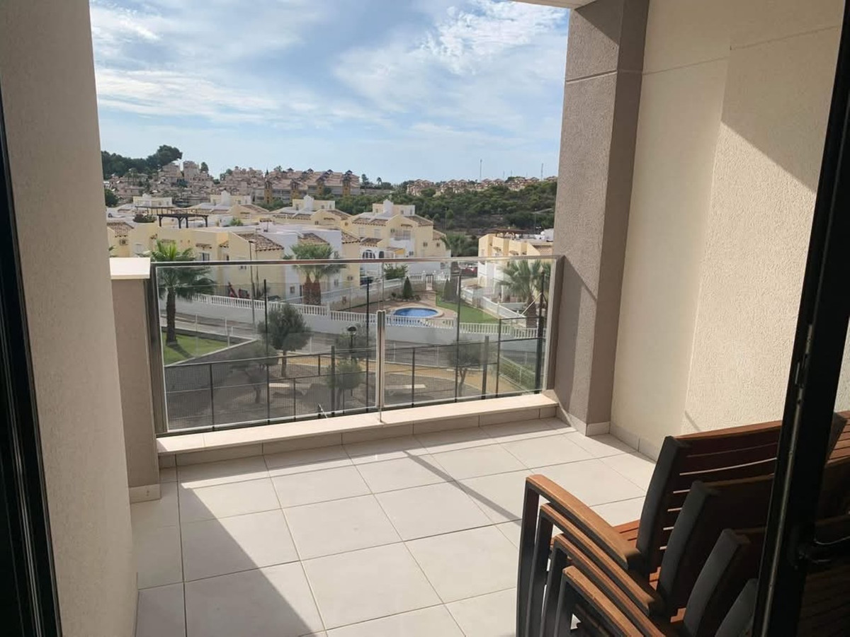 This stunning modern second floor apartment with 2 bedrooms, 2 bathrooms and private rooftop terrace/solarium is situated in Villamartin, Alicante only a few minutes walk to all local amenities (restaurants, bars and shops).