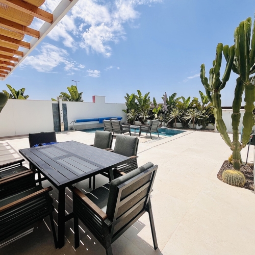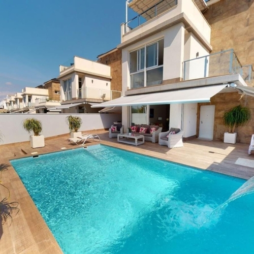This elegant detached villa of 290 m², located in the prestigious Residencial El Faro in Torrevieja, has been recently renovated and combines modern design, functionality, and a privileged location with open sea views.