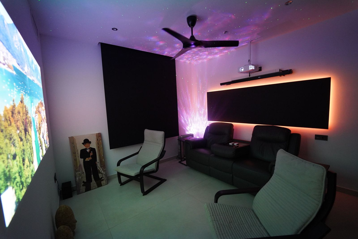 Cinema room, American fridge, LED ambient lighting, and security system