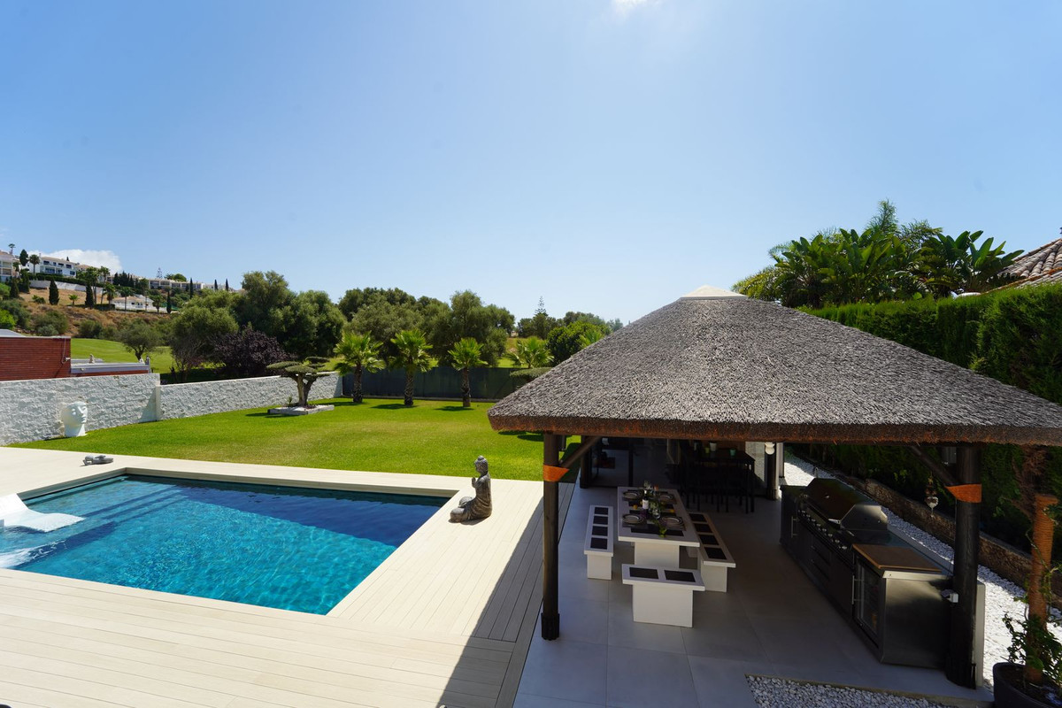 Discover a stunning fully renovated single-level villa located front-line on the prestigious Los Olivos Golf Course in the exclusive Mijas Golf urbanization. Just minutes from La Cala de Mijas and its beaches, shops, and charming village center, and a short 30-minute drive to both Marbella and Málaga Airport.