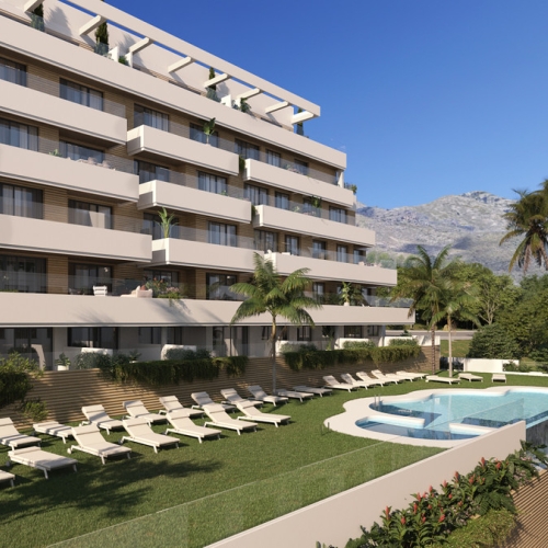 Beläget i Torremolinos, mittemot en medelhavstallskog och bara ett stenkast från stadens centrum, öppnar dessa spektakulära hem upp för det pulserande livet på Costa del Sol.