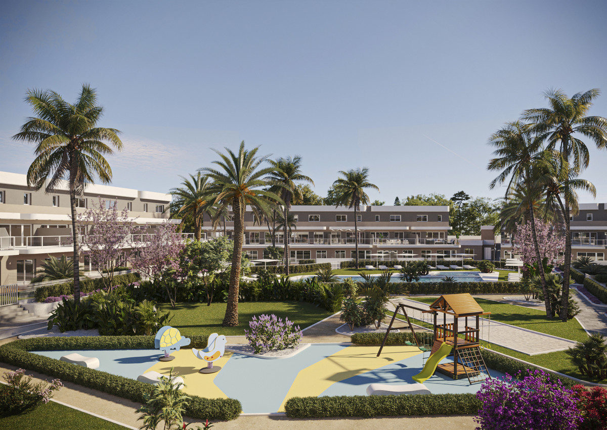 Lägenheterna har även trädgård, privat parkering, gemensam pool för vuxna och barn samt ett multifunktionellt rum. Bottenvåningarna har privat trädgård medan duplexlägenheterna har stora terrasser.