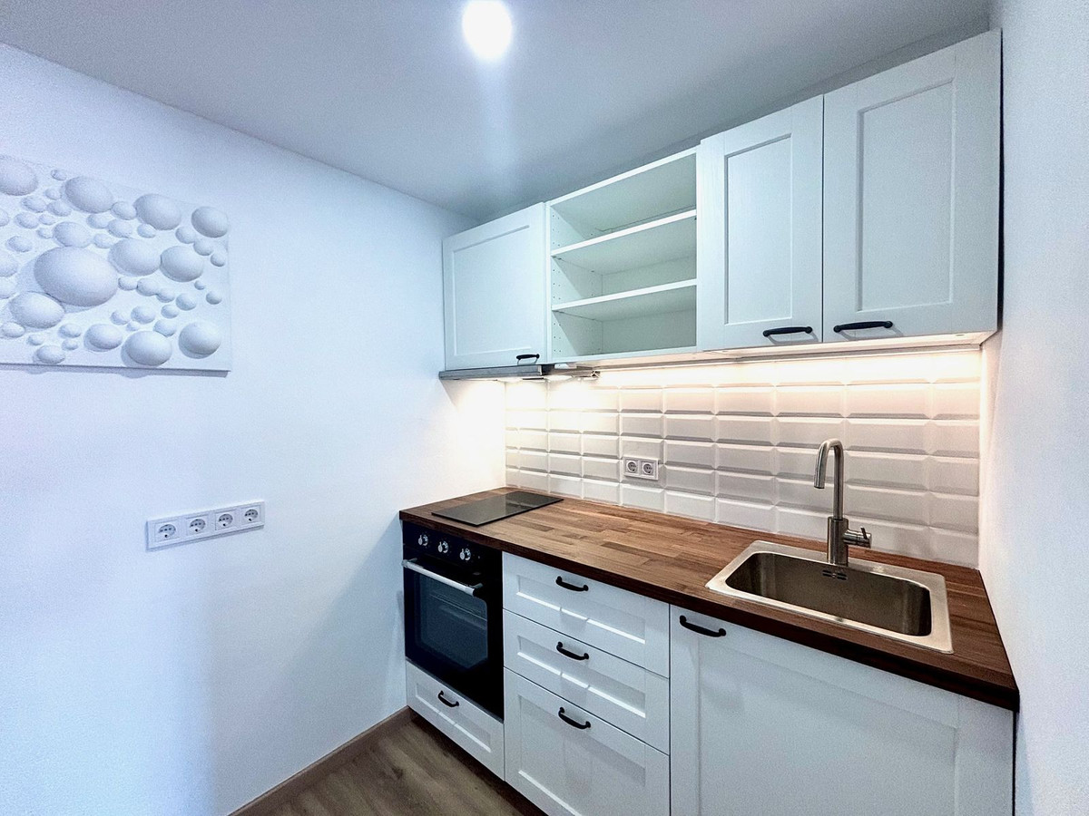 It has 85 m2 of useful surface and includes security system, fiber optic internet, underfloor heating in the bathrooms, ventilation system, kitchen furniture and opaque curtains in all windows.