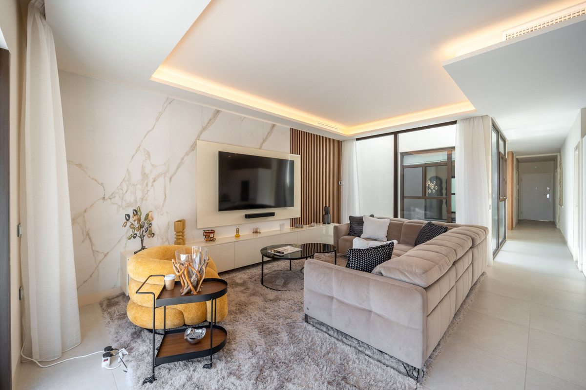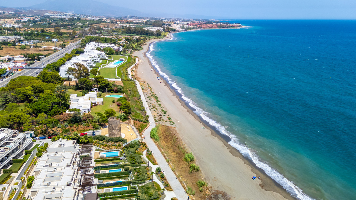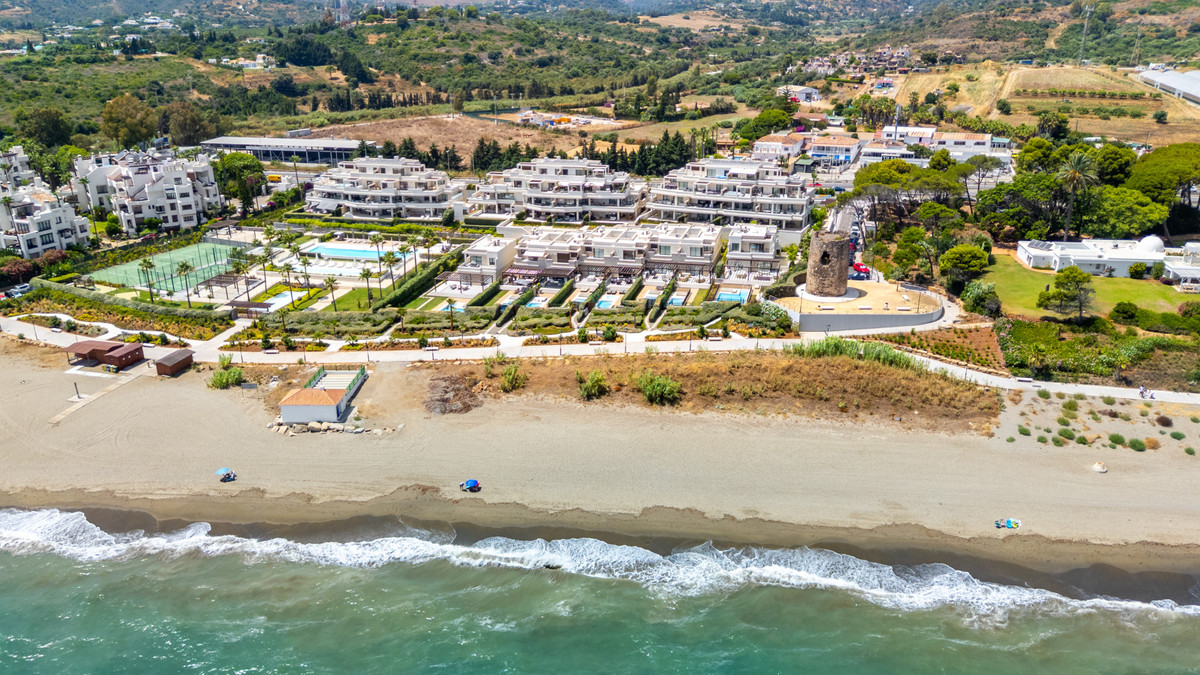 Situated on the frontline of the New Golden Mile, between Puerto Banús and Estepona, this exceptional townhouse offers a unique blend of coastal luxury, privacy, and resort-style amenities. Located in a secure gated community with beautifully landscaped gardens, a spacious communal swimming pool, and direct access to the beach and promenade, it is the ideal Mediterranean retreat.