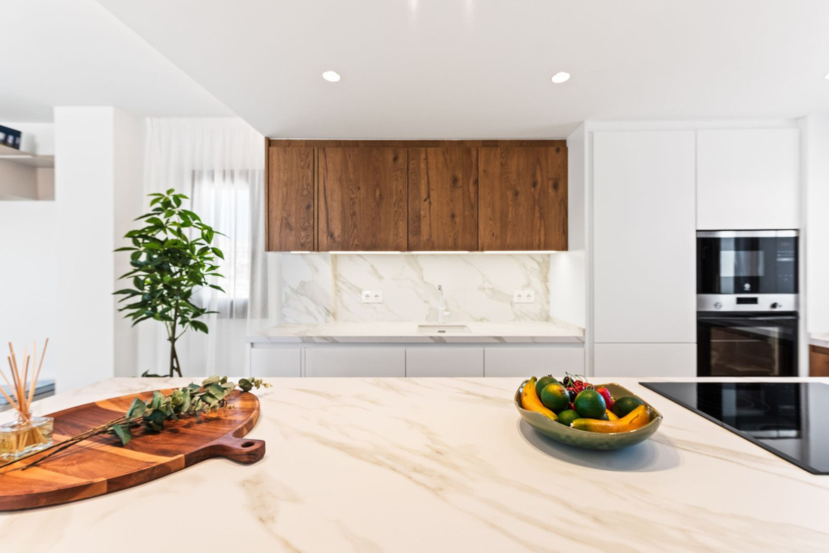 Distributed over two floors, the property offers four spacious bedrooms, three full bathrooms (two of them en suite), and a guest toilet. The residence has been completely renovated with high-quality materials and is delivered fully furnished and ready to move in. The modern and functional kitchen opens to the living-dining room in an open-plan space that connects to an uncovered terrace with impressive panoramic views of the sea, the coastline, and the marina.