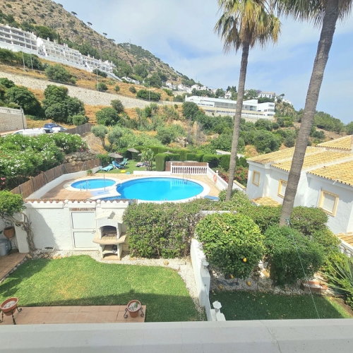 Upptäck detta fantastiska hörnradhus i ett exklusivt, lugnt och inhägnat bostadsområde i La Sierrezuela (Mijas), endast 20 minuters promenad från strandpromenaden och stränderna i Fuengirola. Perfekt för familjer som söker utrymme, komfort och livskvalitet.