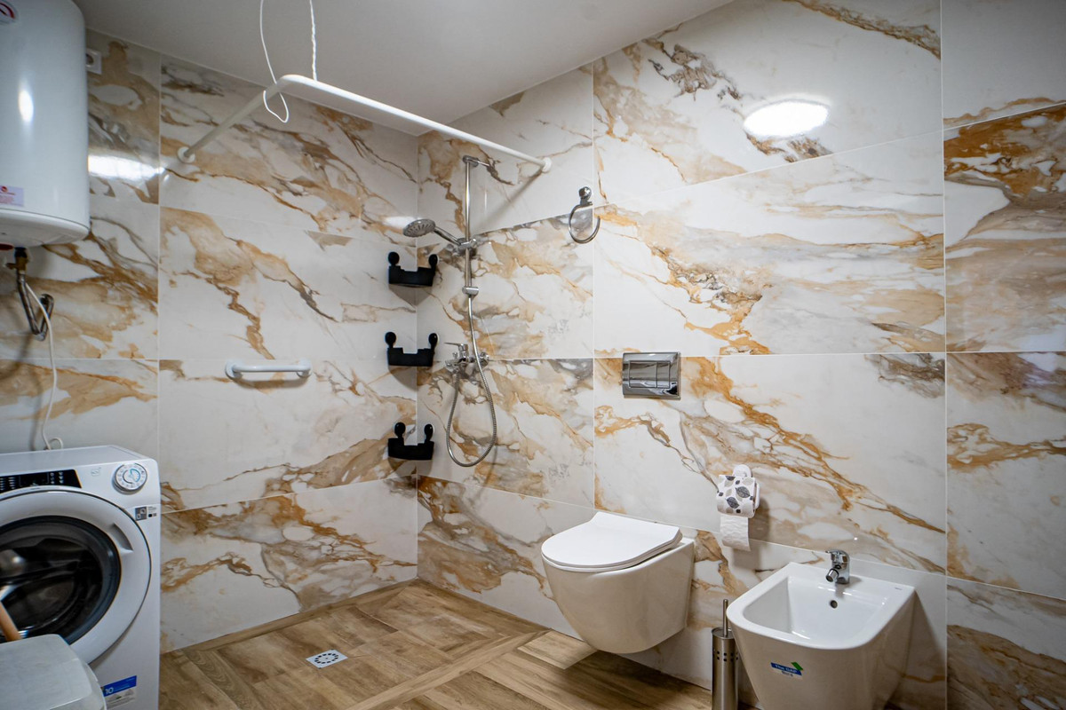 Från den stora täckta terrassen når man ett solarium med panoramautsikt över havet och bergen, och även tillgång till trädgården. I den lättskötta trädgården finns en pool med jacuzzi, båda med saltvatten, ett badrum, och tillgång till bottenvåningen, garaget och parkeringsplats för två bilar. Poolen har sin egen vattenpump och det finns en vattentank för trädgården och poolen.
