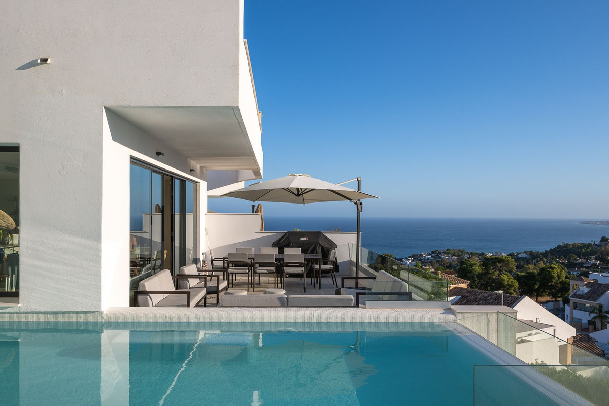 Welcome to this stunning fusion of cutting-edge design, breathtaking views, and luxury living, nestled within the highly coveted Urbanization Marae in Benalmádena Costa. This sophisticated villa offers an unrivalled lifestyle of elegance, privacy, and panoramic beauty perfect as a full-time residence, luxury holiday home, or premium investment opportunity.