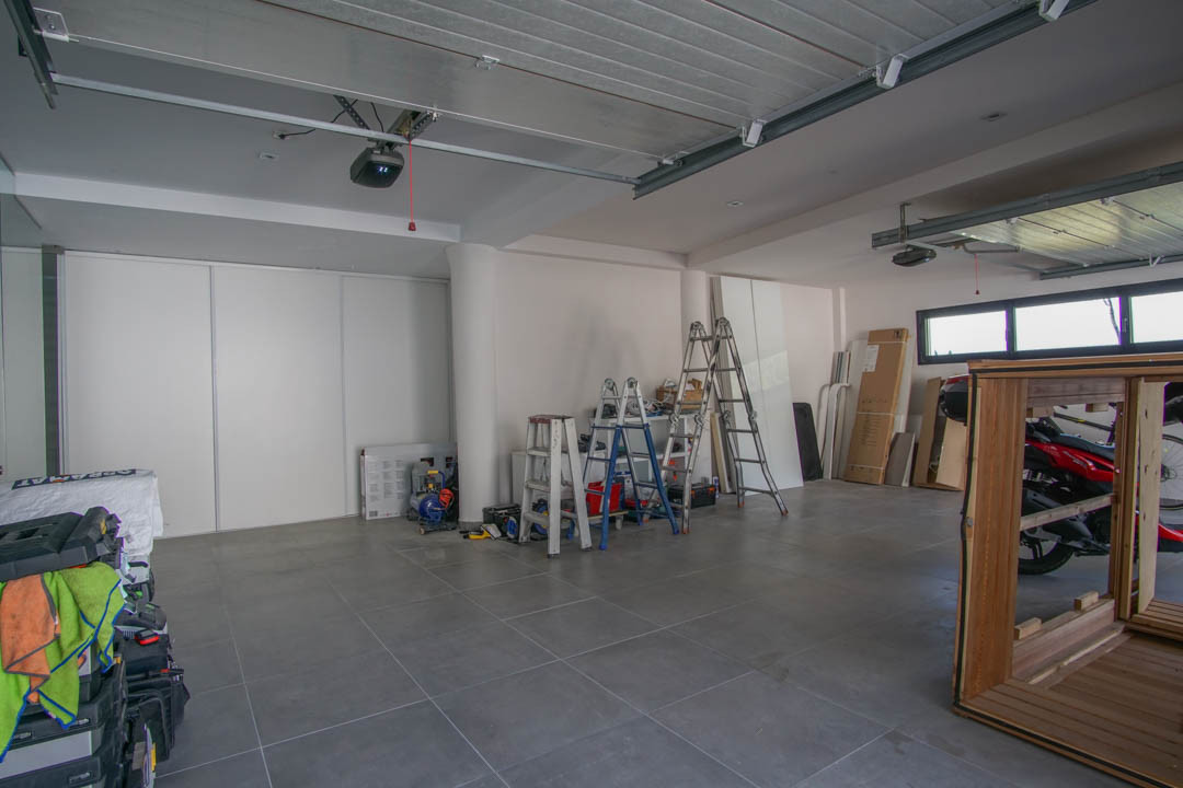 On the basement level there is a double garage, 2 large bedrooms, a bathroom, a storage room and a technical room.