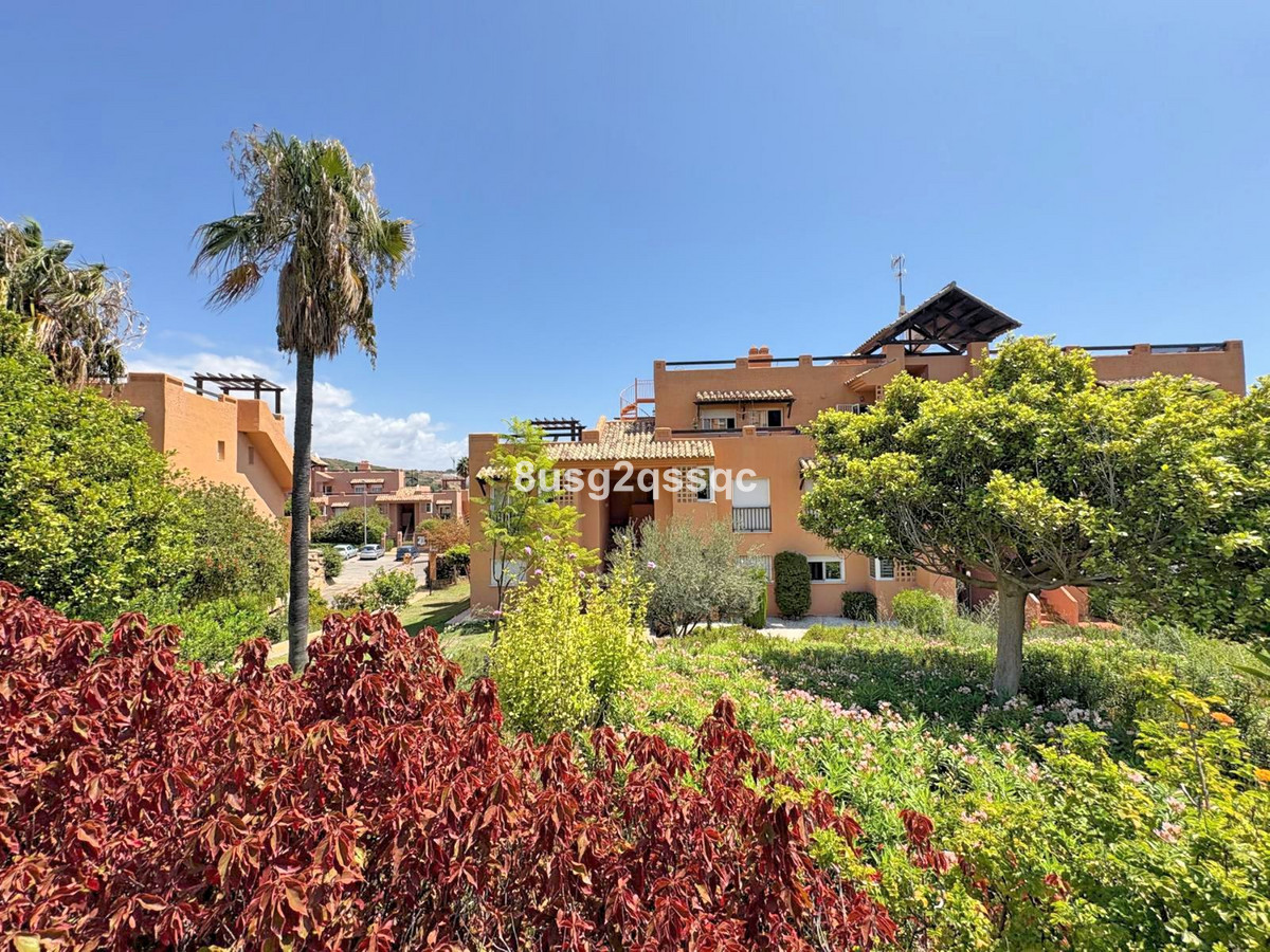Set within the peaceful gated community this beautifully renovated 2-bedroom, 2-bathroom ground floor apartment offers the perfect blend of comfort and convenience – ideal for seamless indoor-outdoor living. This east-west facing residence offers natural light throughout the day and features a generous covered private terrace perfect for dining while enjoying distant sea views surrounded by lush gardens.
