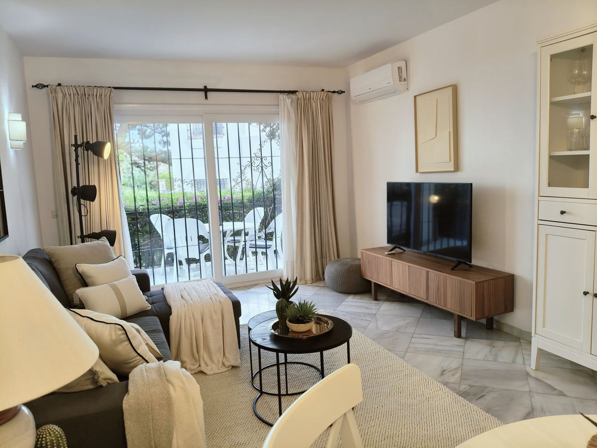 Excellent opportunity to acquire a one level garden apartment with a spacious storage room/Andalucian courtyard in El Paraiso Cortes Del Golf, Benahavis.