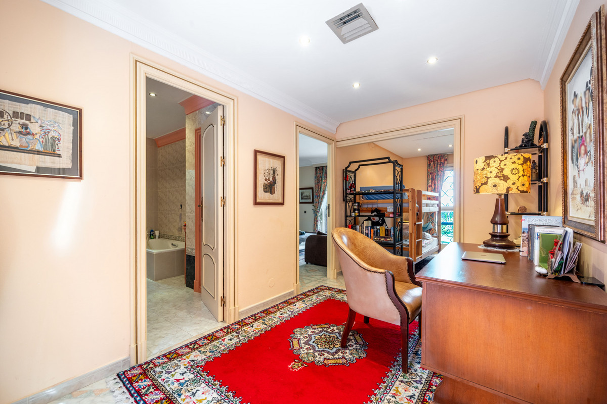 The existing villa spans 1,098 m² of built space and features nine bedrooms and six bathrooms, arranged in a classic Mediterranean layout. The residence is surrounded by vibrant gardens and includes a large swimming pool, a private tennis court, and expansive lawns—ideal for outdoor entertaining or quiet moments of relaxation.