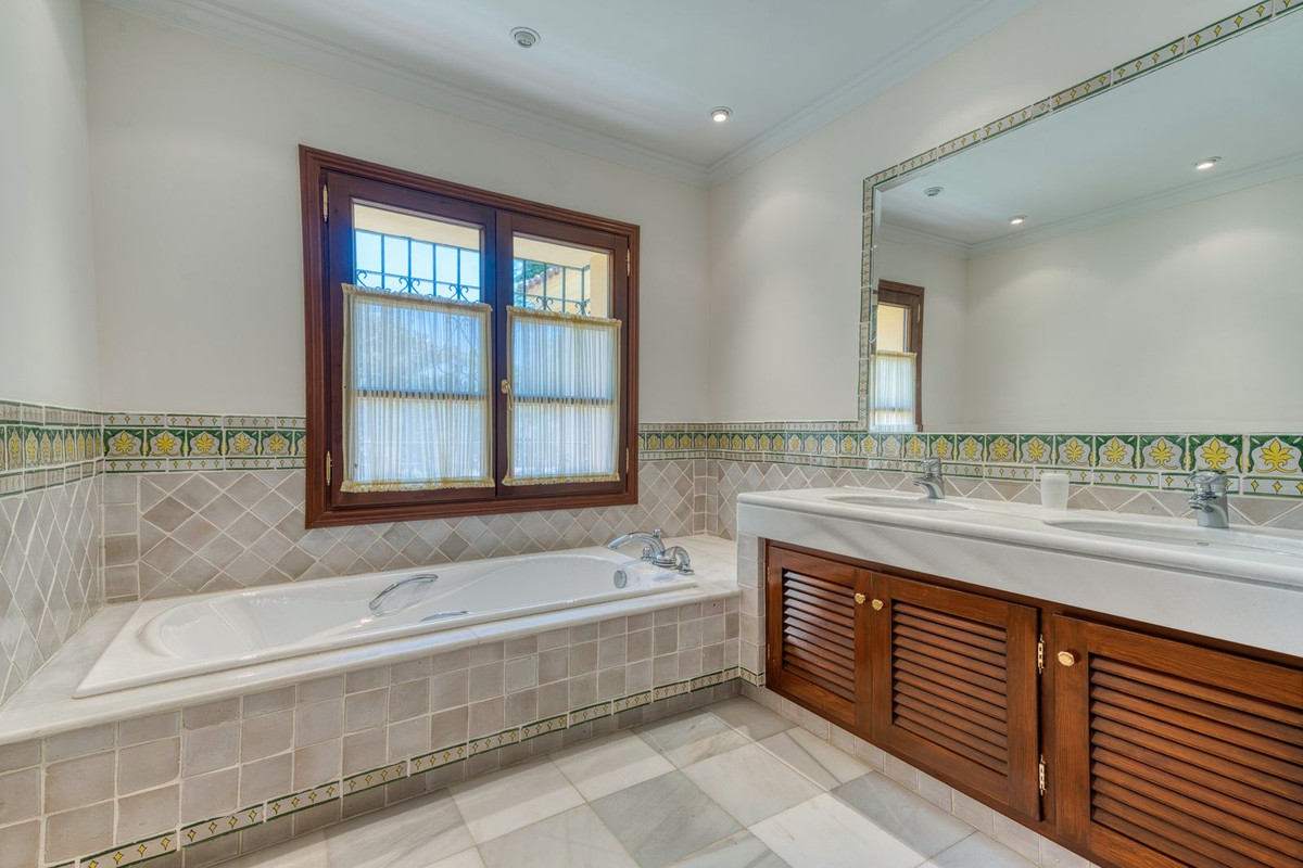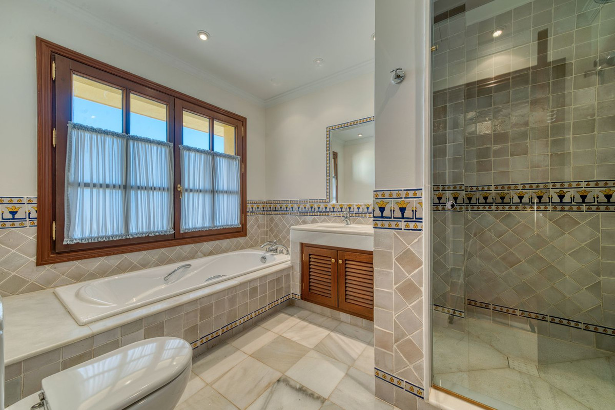 Outside, flat landscaped gardens wrap around a spectacular swimming pool and a thatched-roof summer bar and kitchen, the perfect setting for long afternoons and warm evenings under the Andalusian sun.