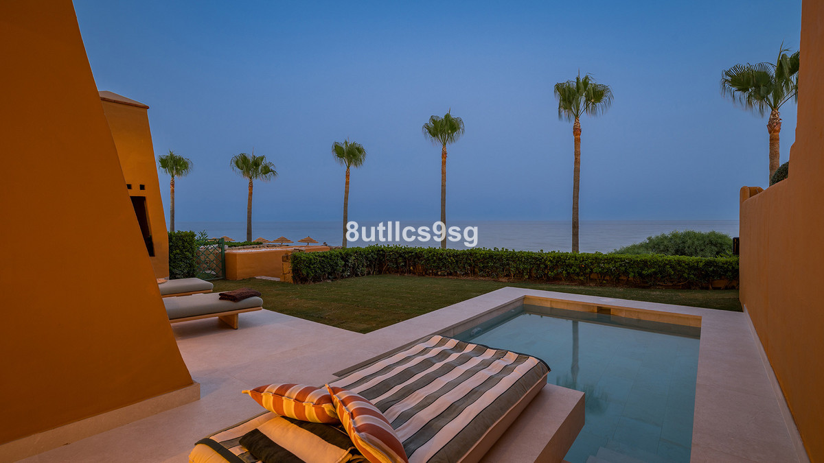 This ground floor apartment is situated in Los Granados del Mar, Estepona East, offering direct access to the beachfront and proximity to local amenities. The property stands out for its generous dimensions, comprising 273m² built area with 186m² of interior space and an 87m² terrace. Its location within a gated community ensures both privacy and security, with 24-hour surveillance and security services in place.
