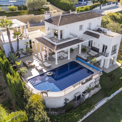 Till vänster i huset hittar du huvud sovrummet med eget badrum. Två ytterligare rymliga sovrum delar på ett välutrustat andra badrum. Både huvudsovrummet och vardagsrummet öppnar upp mot en skuggad täckt terrass med ett utomhuskök – den perfekta platsen för utomhusmat och underhållning.