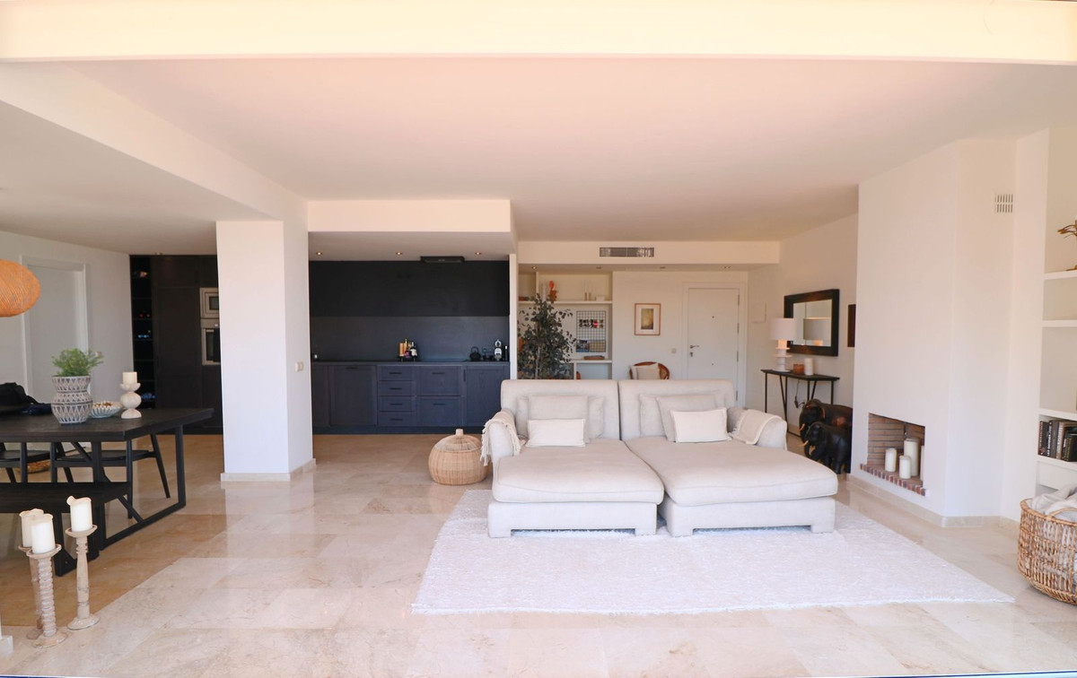 Spectacular 2-bedroom, 2-bathroom apartment, completely renovated in the exclusive area of La Mairena, Ojén, surrounded by nature and with unparalleled views of the sea, the golf course, and the mountains. The property features a modern open-concept design, with a kitchen integrated into the living-dining room, providing ample space and light throughout. It has two private terraces: one measuring over 15 m² with stunning views of the Mijas Valley, the sea, and the natural surroundings, and another measuring over 6 m² with unobstructed views of the Ojén mountains, ideal for relaxing and enjoying the tranquility of the surroundings. It includes two large parking spaces and a storage room. It is located in a luxury development offering well-kept gardens and a spectacular communal infinity pool with sea and mountain views. This property represents a unique opportunity both for year-round living and for investing in one of the most peaceful and privileged areas of the Costa del Sol. In addition, there is the possibility of purchasing the adjoining penthouse, with the same characteristics but in need of renovation, either to join both properties or as an excellent independent investment. Its price is €455,000.