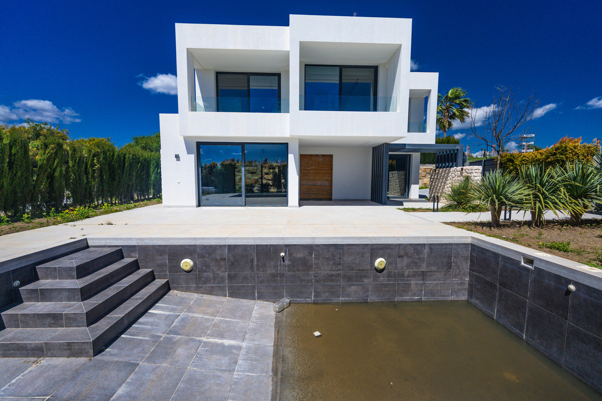 The villa comes with a private pool, garden, and garage, and is situated in a quiet residential area close to the beach, golf courses, restaurants, and all amenities. The south-facing orientation ensures all-day sun and a warm, inviting atmosphere.