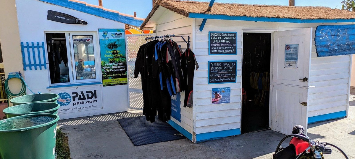 Dive School at Sunset Beach Club Hotel (4):* Onsite 'Scuba Shack' with direct pool access and immediate beach dive site entry. Includes classroom, office, and stocked with CRESSI dive school gear.