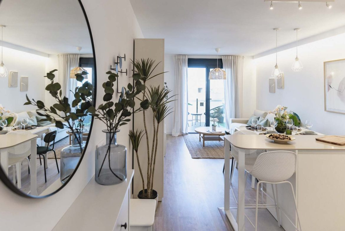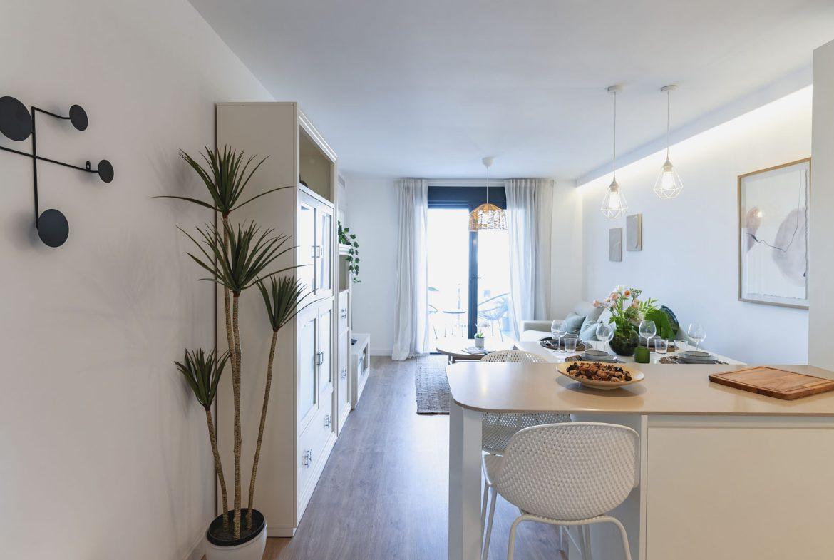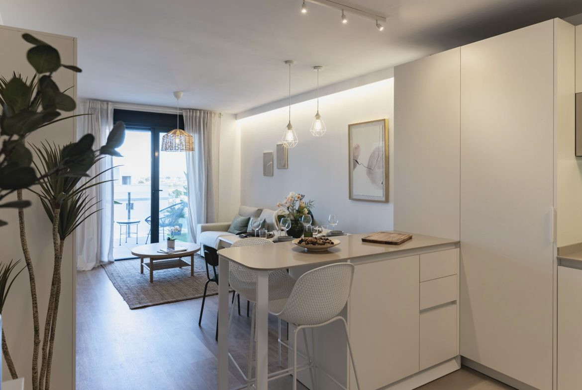 Det finns penthouse-lägenheter med 2 och 3 sovrum och stora terrasser, lägenheter på första och andra våningen med 2 och 3 sovrum samt lägenheter på bottenvåningen med 2 och 3 sovrum och terrass.