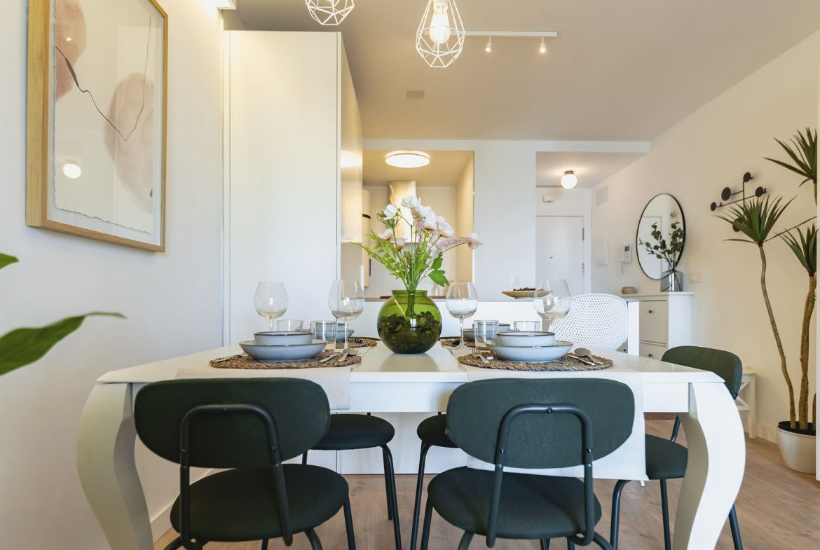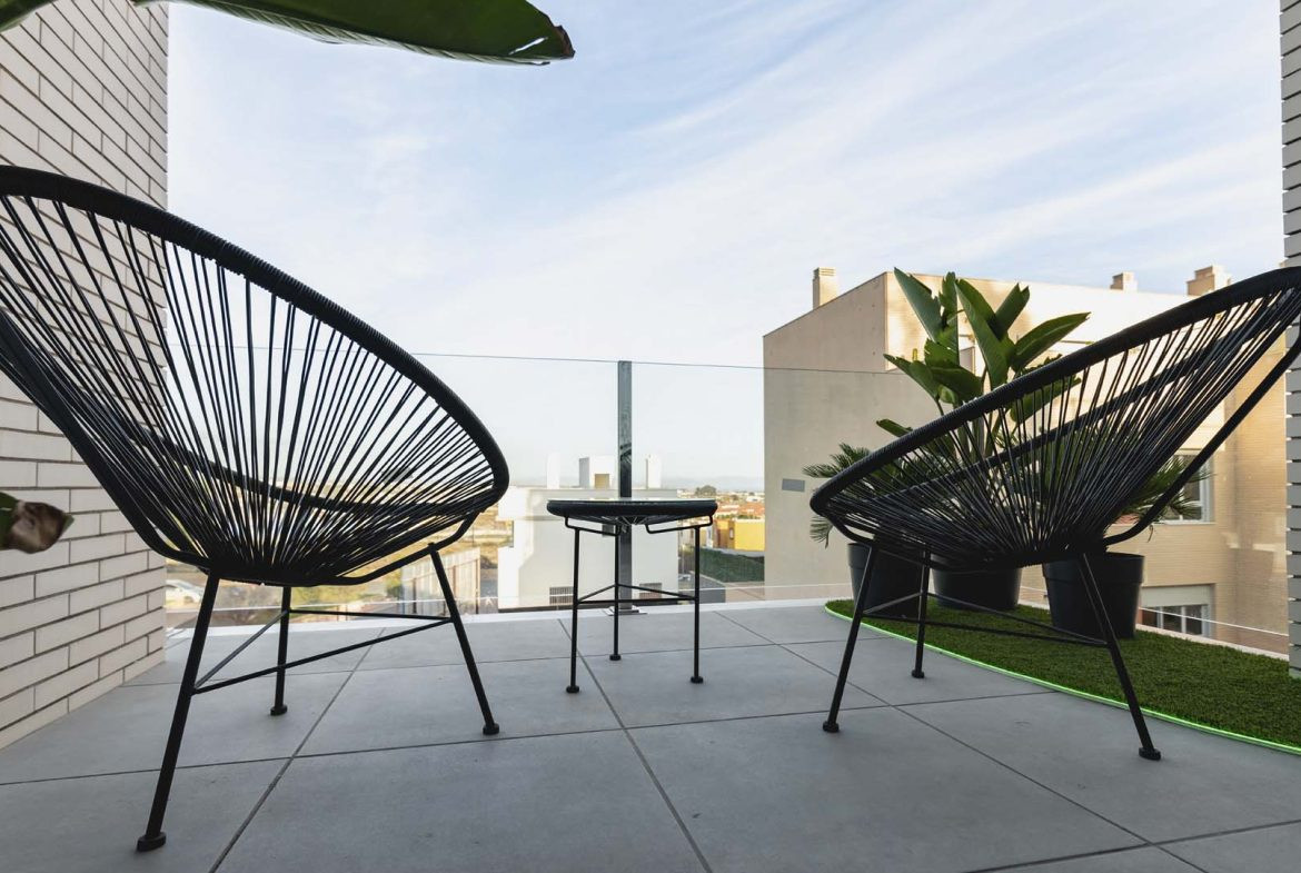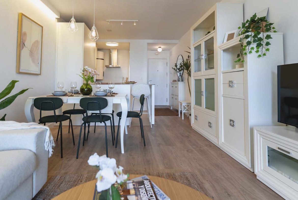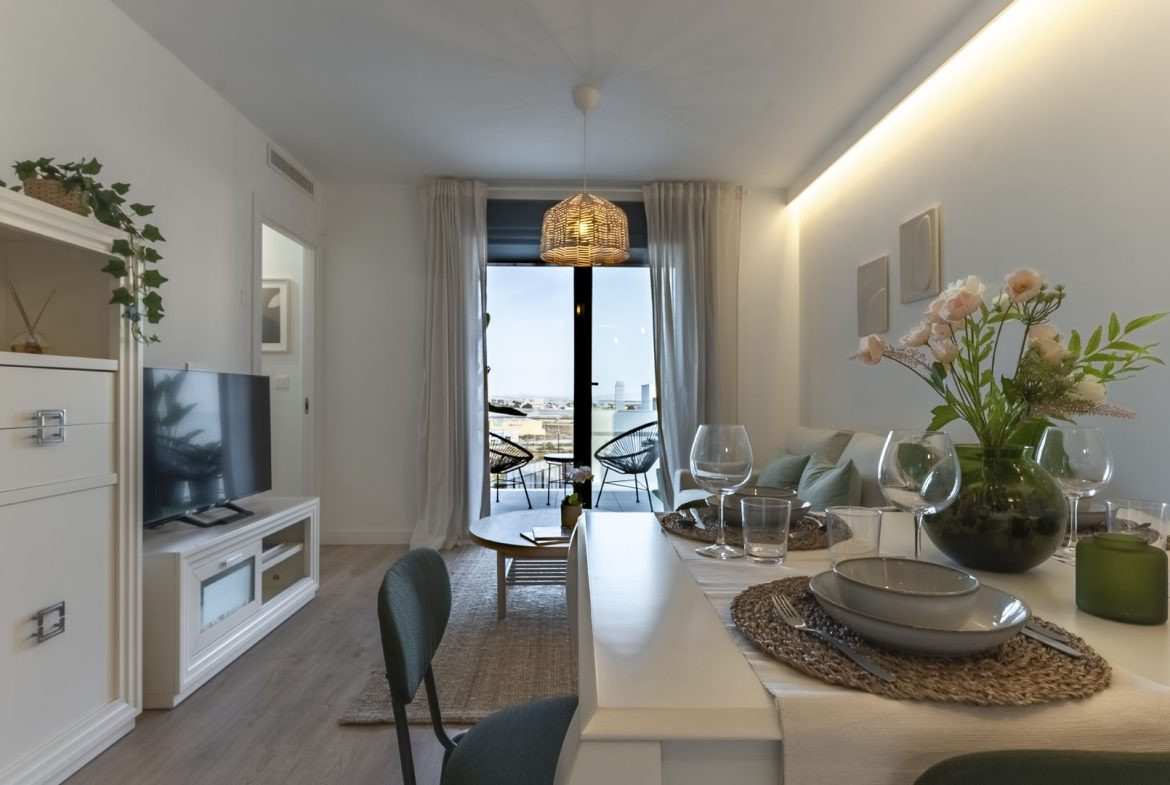 Det finns penthouse-lägenheter med 2 och 3 sovrum och stora terrasser, lägenheter på första och andra våningen med 2 och 3 sovrum samt lägenheter på bottenvåningen med 2 och 3 sovrum och terrass.