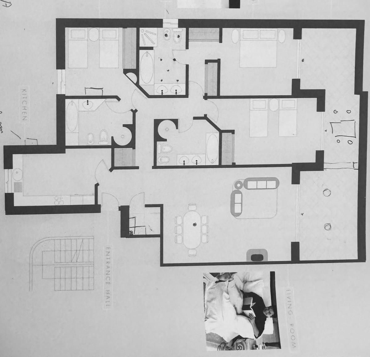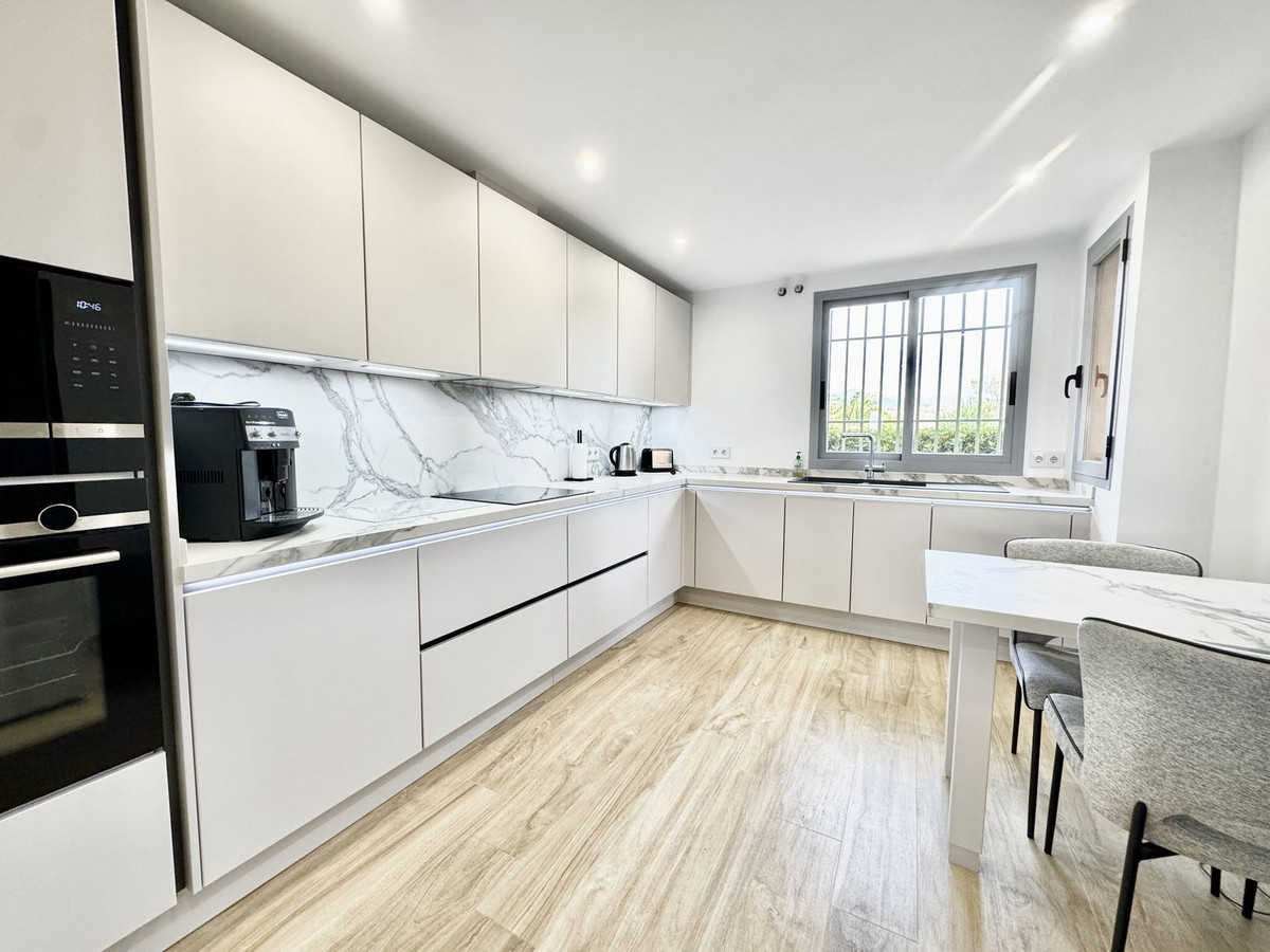 The master bedroom stands out with its ample space, a brand-new en-suite bathroom, and direct access to the main terrace and garden, blending indoor and outdoor living beautifully. All three bedrooms are equipped with built-in wardrobes and large windows for natural light. The three bathrooms are