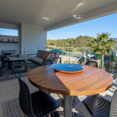 Located in Selwo, Estepona, this bright corner apartment, built in 2007, is set within a peaceful and well-maintained community. It features 2 double bedrooms, 2 bathrooms, and a spectacular south and west-facing terrace, perfect for enjoying the spacious outdoor area with stunning mountain views and distant sea views.