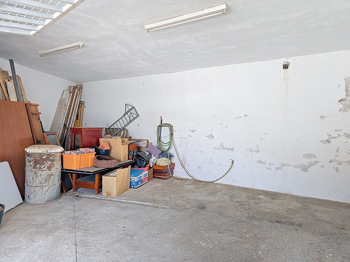 På den lägsta nivån av tomten finns ett separat garage med direkt tillgång till förbindelsevägen, perfekt som arbetsrum eller förråd. Detta utrymme har också en ingång till trädgården och huset. Dessutom finns det ett andra garage med port på framsidan av huset.