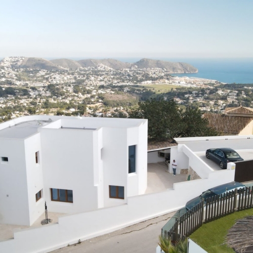 Located in one of the most exclusive areas of Moraira, this captivating Mediterranean-style villa offers stunning open views of Cabo de Moraira, the sea, and the entire coastline. Nestled atop a hill, the property enjoys absolute privacy in its outdoor spaces: a spacious sunny terrace, a low-maintenance garden, and a uniquely designed pool, all perfectly integrated into the natural surroundings.