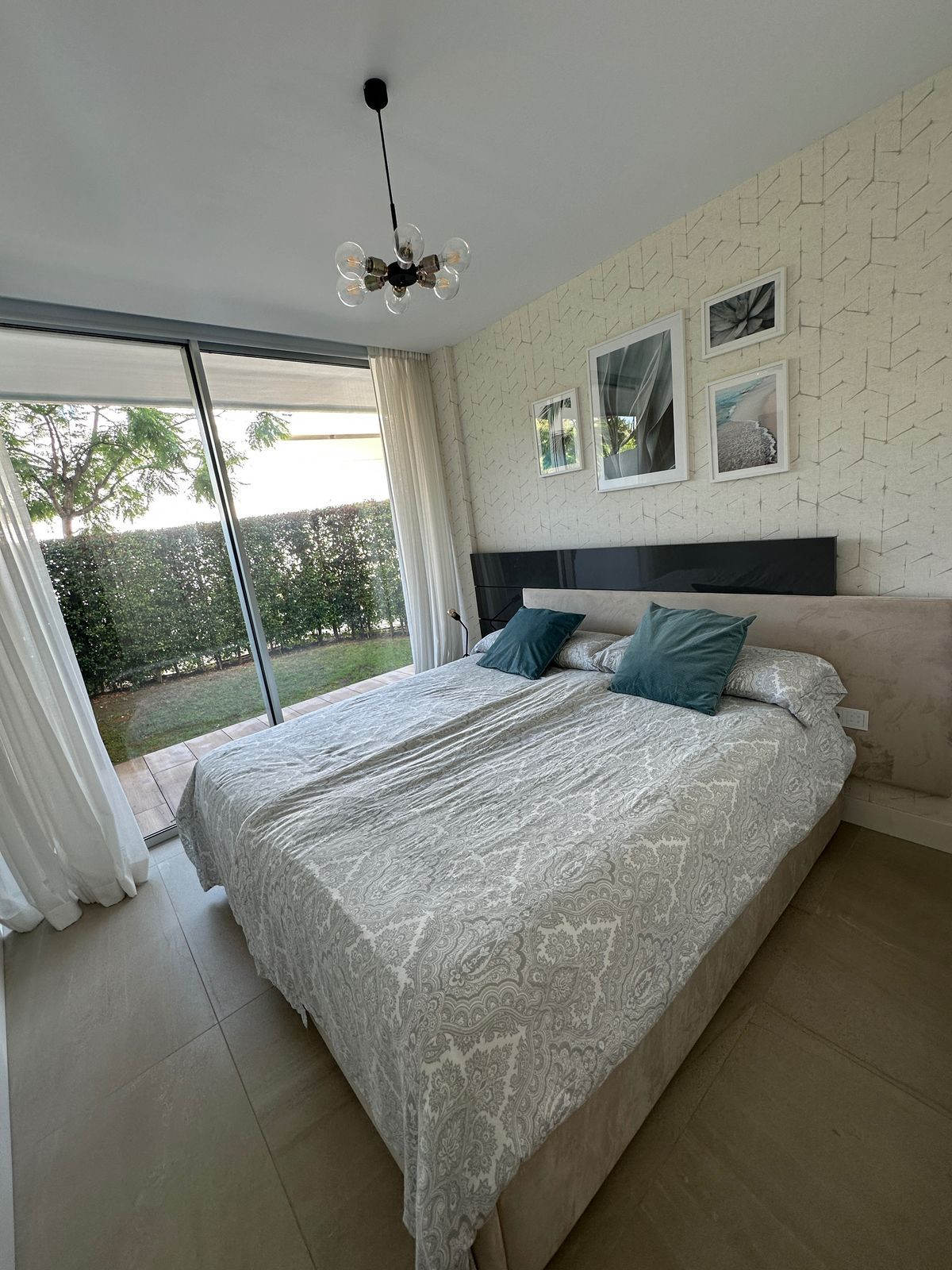 This spacious ground floor apartment offers approx. 121 m² of usable space and features 2 bedrooms, 2 elegant bathrooms, and a minimalist-style open-plan kitchen fully equipped with high-end appliances. The bright and airy living area leads directly to a 17 m² south-facing terrace with panoramic views of the Mediterranean Sea – the perfect spot to relax or enjoy al fresco dining.