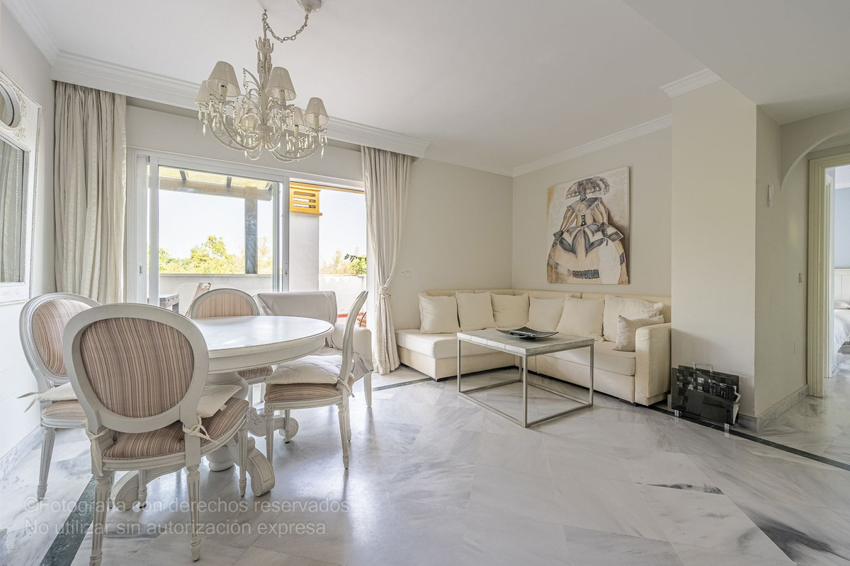 Bright two-bedroom, two-bathroom penthouse located in La Dama de Noche, one of the most exclusive and sought-after residential complexes in the area. Just one kilometre from the beach and Puerto Banús, it offers the tranquillity of a residential setting along with the convenience of having all services close at hand.