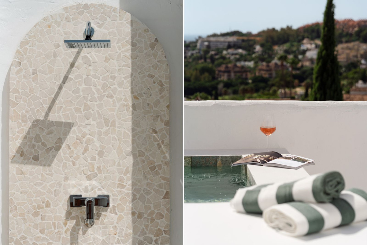 Upstairs, two more en-suite bedrooms each enjoy their own terrace. The master suite offers a walk-in closet and a spacious terrace complete with a private plunge pool, outdoor shower, and uninterrupted sea views, a true retreat.