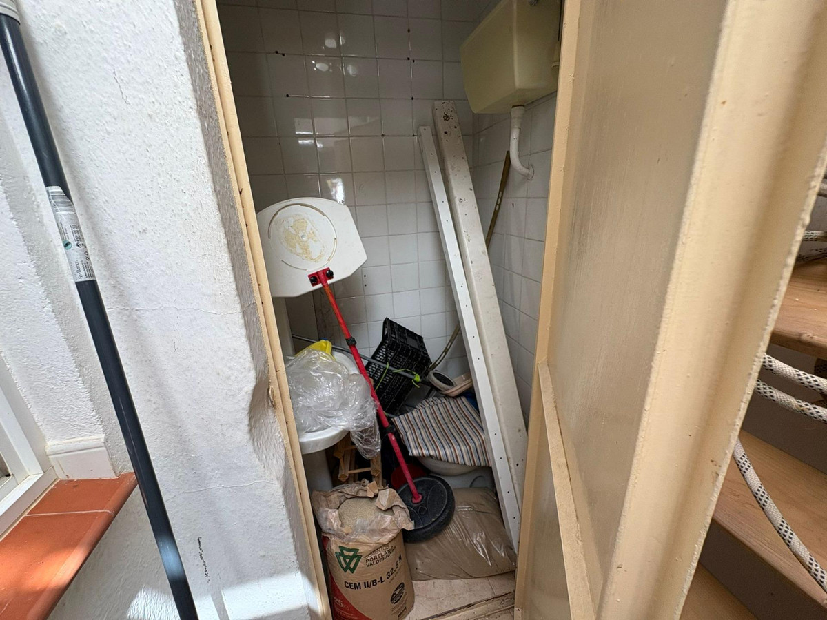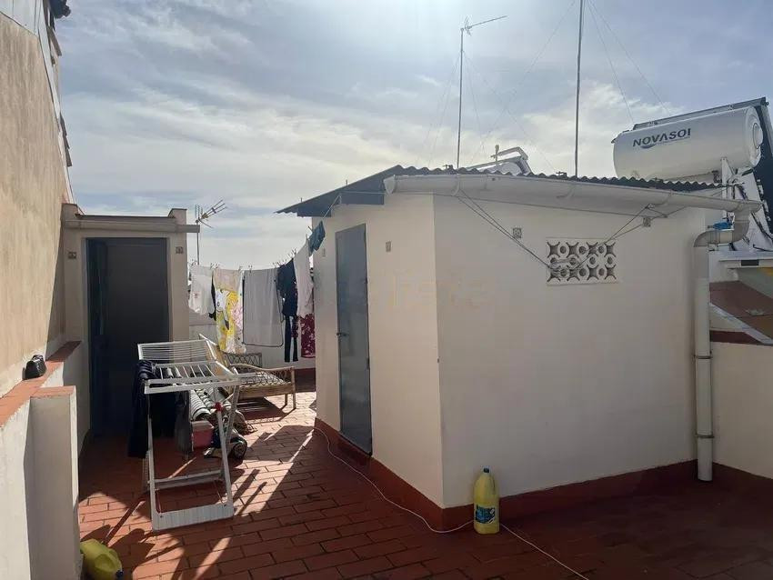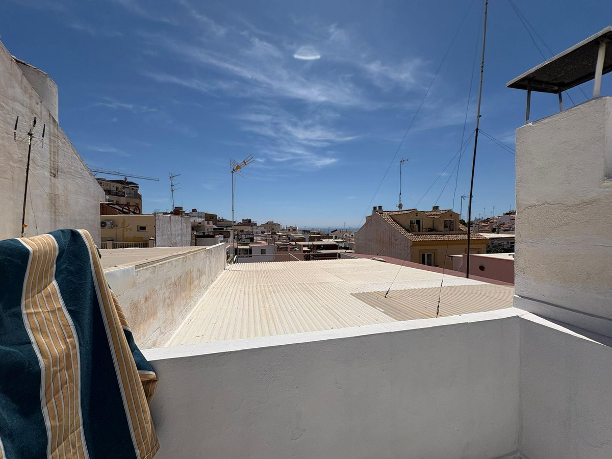 The property is distributed over two floors plus a spacious rooftop terrace. On the ground floor, you'll find one bedroom, a small bathroom, a cozy living room, and a functional kitchen with access to a small patio. The second floor features two bright bedrooms and a full bathroom. The terrace, approximately 45 m², includes a laundry room and boasts beautiful sea views, making it the perfect space to relax, enjoy outdoor dining, or create a chill-out area.