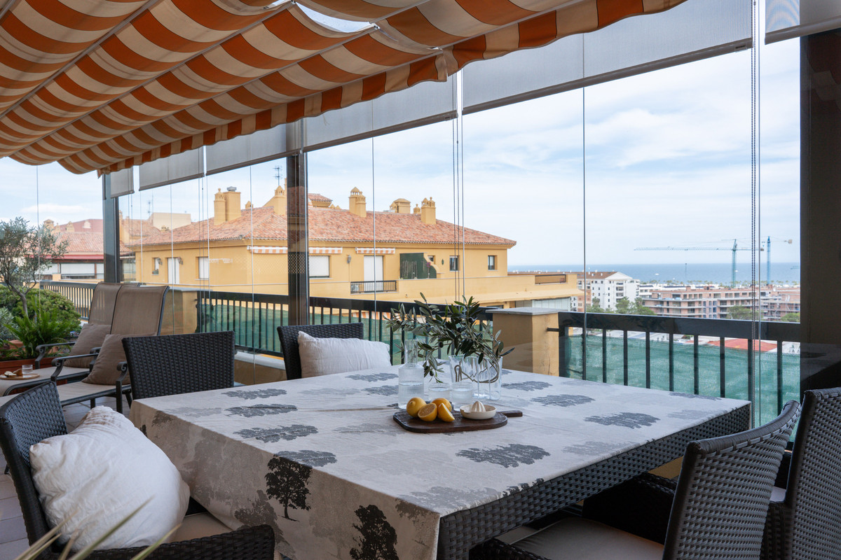 Vad som verkligen särskiljer denna takvåning är den omfattande terrassen som omger fastigheten och mäter över 143 m². Denna utomhusoas ger oslagbara vyer och kan nås från nästan varje rum, vilket ger dig känslan av att bo i en avskild sky villa snarare än en takvåning. Det är den perfekta miljön för solbadning, utomhusmatlagning eller helt enkelt att njuta av de fridfulla omgivningarna medan du beundrar de otroliga vyerna över Medelhavet.